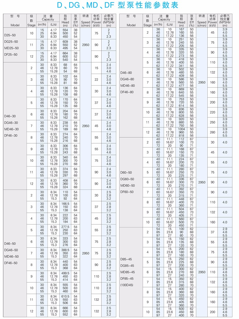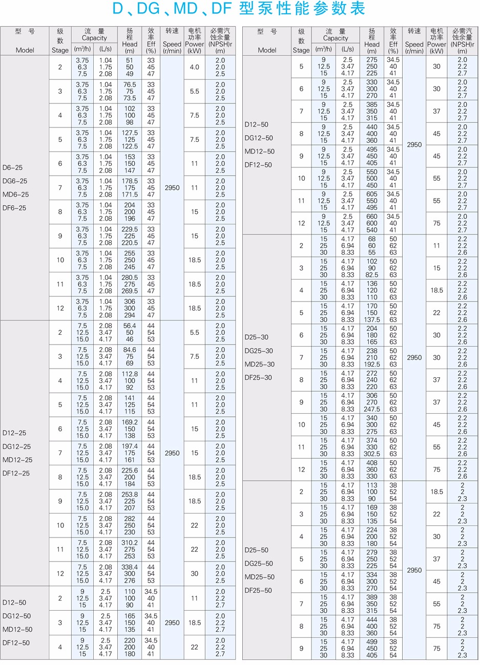 DG型高吸程單吸多級(jí)熱水離心泵供輸送清水或物理及化學(xué)性質(zhì)類(lèi)似于清水的其他液體之用。介質(zhì)溫度不大于105℃,適用于小型鍋爐給水或輸送熱水和類(lèi)似熱水的介質(zhì)。也可根據(jù)用戶要求制作介質(zhì)溫度不大于150℃場(chǎng)合。